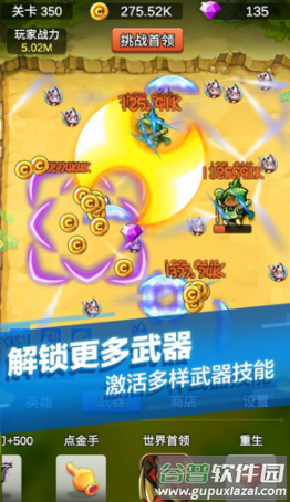 4、武器升级改变攻击模式,相同关卡也能玩出不同套路。