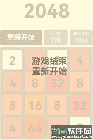 3、当所有格子填满且无法继续合并时,游戏自动结束并结算分数。