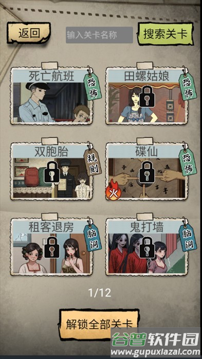 2、主界面会展示所有可选关卡,包括死亡航班、双胞胎、租客退房等主题,点击即可开始对应挑战;