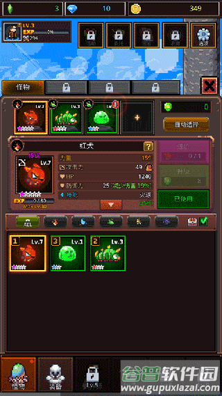 6、在怪物图鉴查看已捕获的像素兽,选择强力个体编入战队;