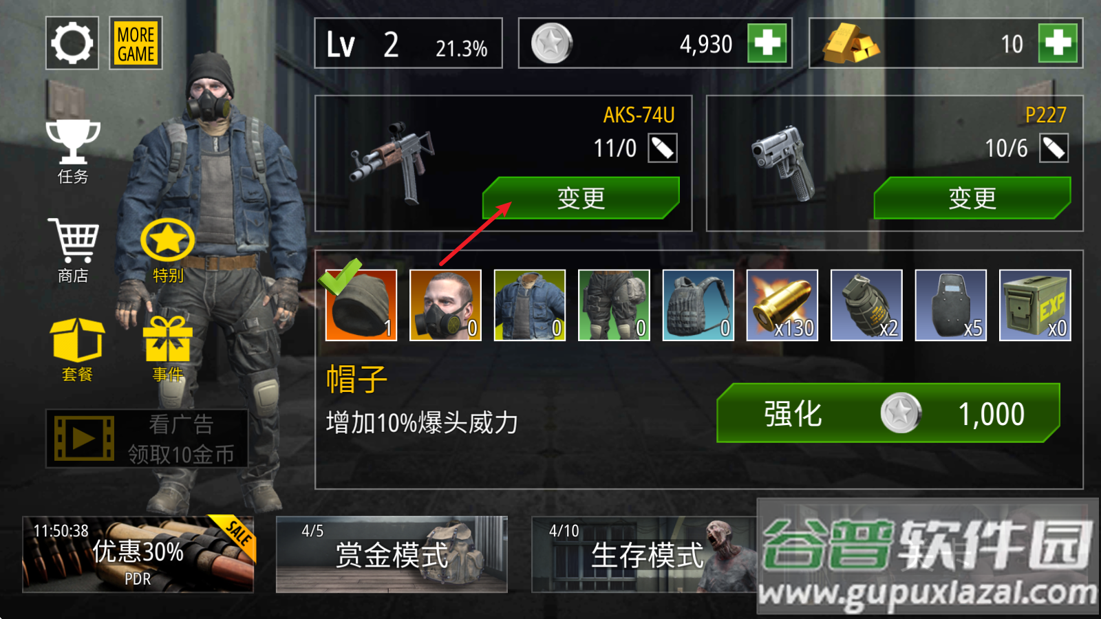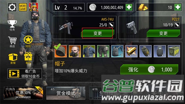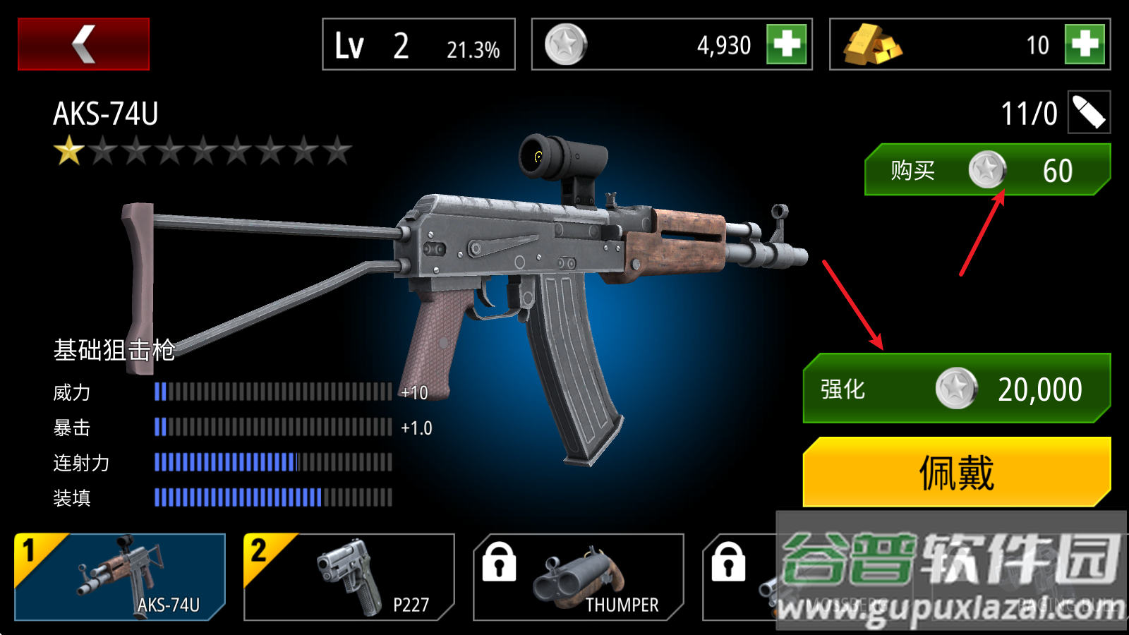 4、武器升级需要消耗战斗获得的银币,每次升级提升暴击率和装弹量。