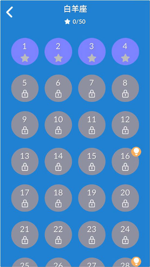 3、每个星座包含50个精心设计的关卡,需要按顺序逐步解锁