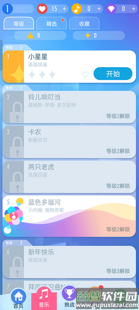 3、选择心仪的歌曲,新手建议从简单难度开始练习;