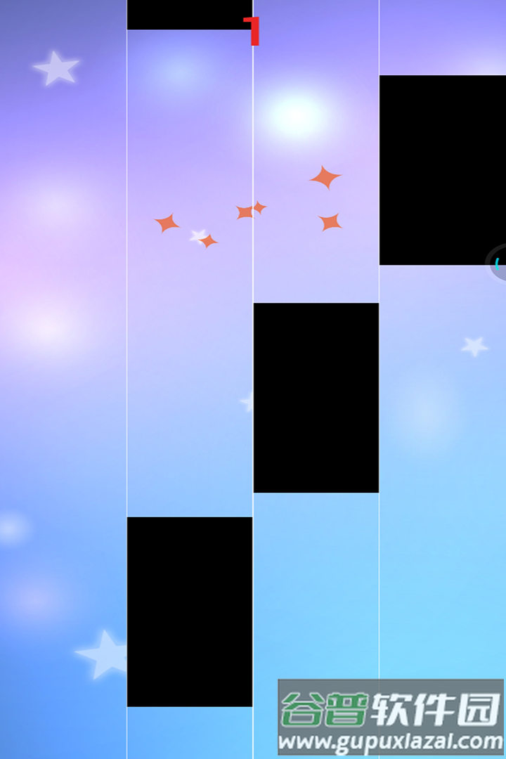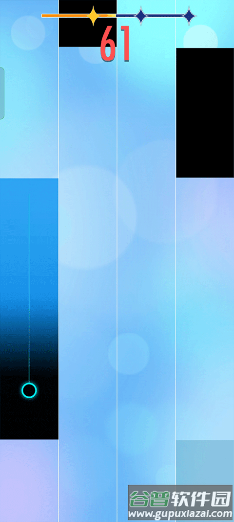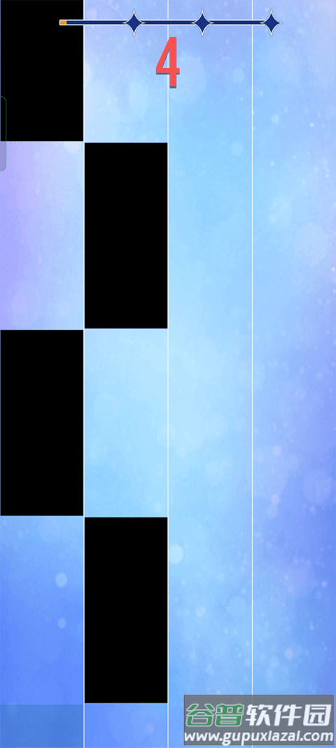 4、游戏开始后,注意观察四个轨道上滑落的黑色琴键,准确点击才能奏响音符;