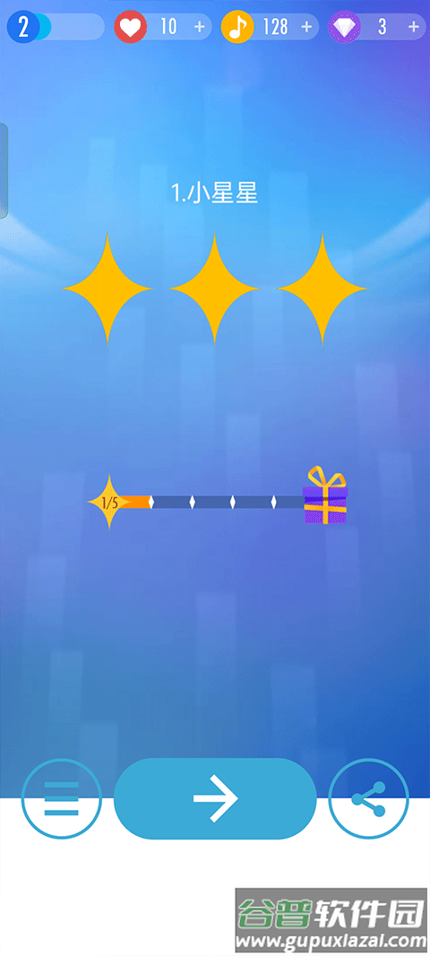 6、演奏结束后会根据准确度给出评级,满分为三个皇冠。
