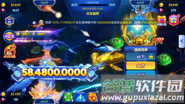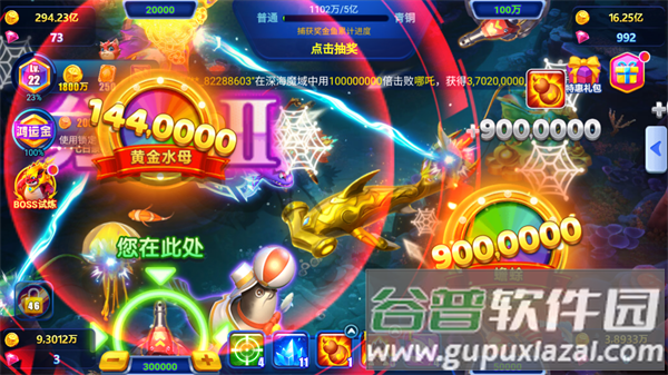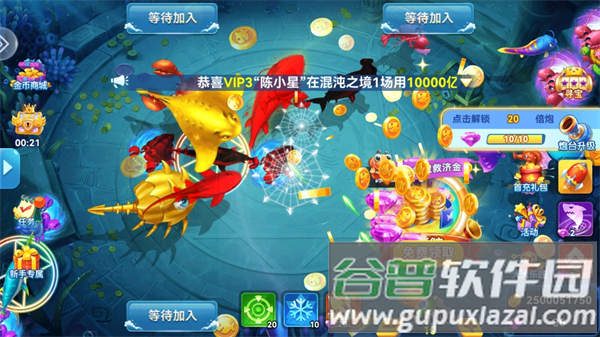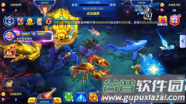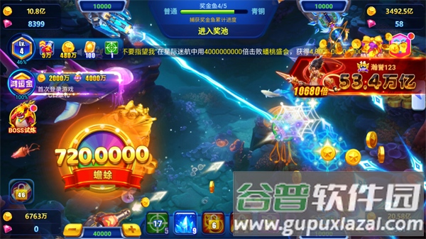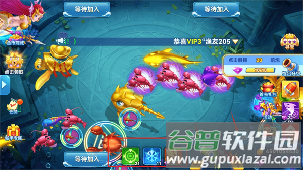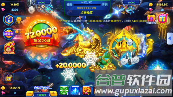 4、特殊奖金鱼随机出现,捕获立即获得十倍收益。
