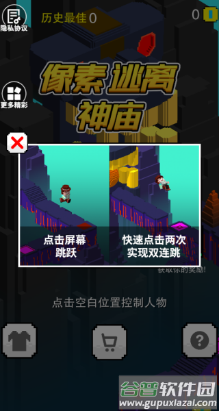 在古老神秘的像素神庙中,一场惊心动魄的逃亡之旅正等待你的挑战。这款由青岛乐兔科技打造的跑酷游戏将带你体验肾上腺素飙升的快感,化身敏捷勇者穿梭于危机四伏的遗迹。面对身后穷追不舍的巨型滚石,你必须快速做出反应,通过简单的滑屏操作完成转向、跳跃等动作。复古像素画风搭配精心设计的机关陷阱,每场逃亡都充满未知与刺激。游戏操作极易上手但极难精通,考验你的手速与判断力。喜欢刺激跑酷游戏的玩家,快来谷普下载体验吧!