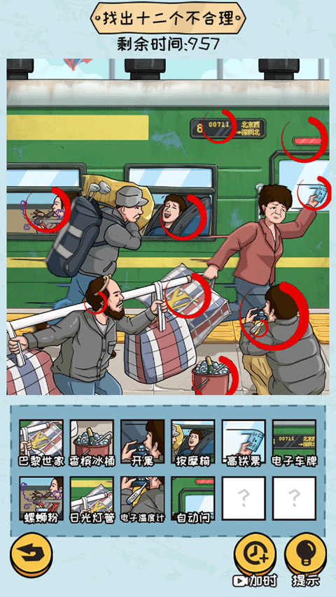 3、核心目标是找出画面里不合理的东西,全部点选才能过关;