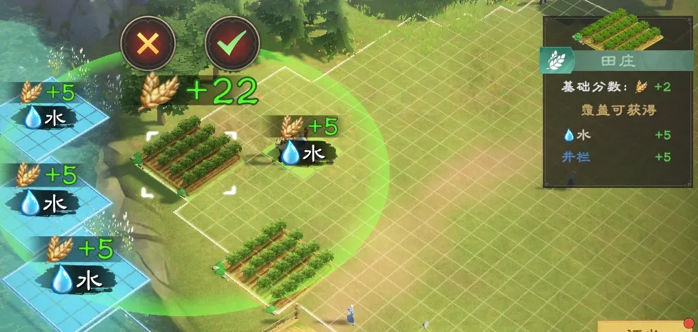 2、低级建筑如村庄、伐木场需临近木材与水源才能获得加分。