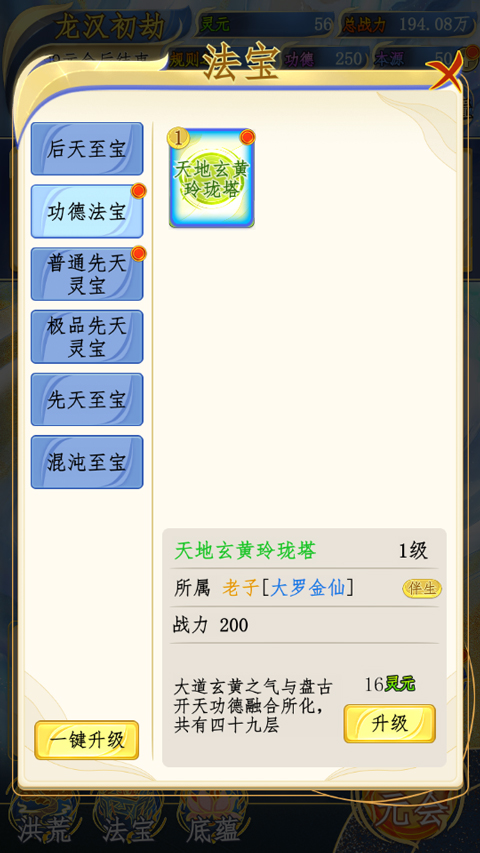 4、对立下功德的单位赏赐法宝,并可对其进行强化升级;