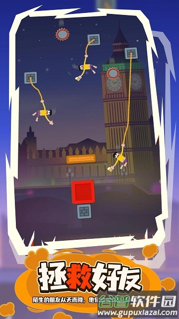 - 把绳子扔到正确位置,注意躲避锯轮和炸弹等危险物品,同时不能让坠落者触地;