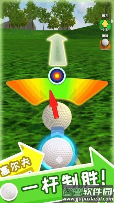 这款游戏还原真实高尔夫运动场景,无需遵守俱乐部规则,玩家可自由体验击球乐趣。游戏过程中可能遇到沙石、树木与风力干扰,需要灵活应对,单指操作即可实现精准击球,模拟真实球场挑战。