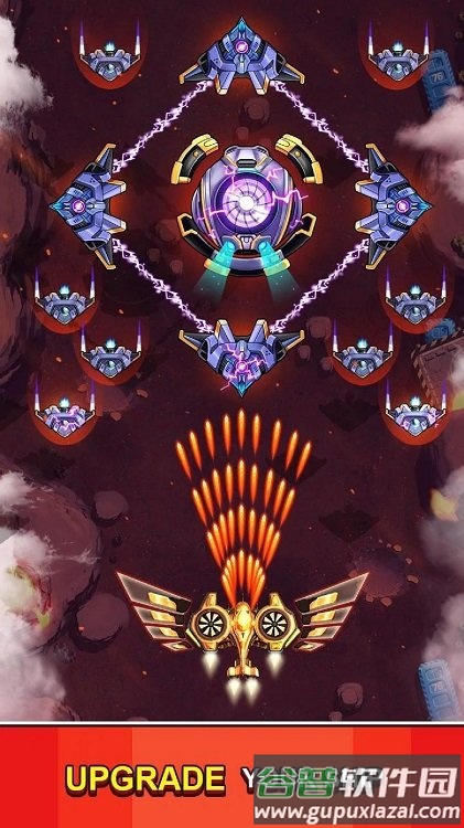 1、解锁不同外形的战机参与战斗,积累能量提升飞机属性,增强火力与防御;
