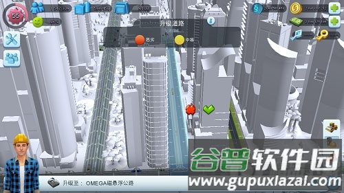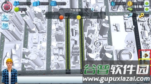 随着城市发展,高楼拔地而起,人口持续增长,交通压力也随之而来。这时就需要升级道路系统。点击道路菜单可以看到三个选项:新建、升级和拆除。选择升级功能后,地图会显示当前道路拥堵状况,黄色代表中度拥堵,红色代表严重拥堵。当出现这些颜色提示时,就需要立即进行道路升级。