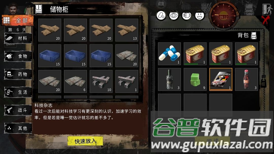 12.物资收集遵循优先级原则,根据当前状态、时间进度和急需材料进行筛选。背包空间有限,合理取舍至关重要。