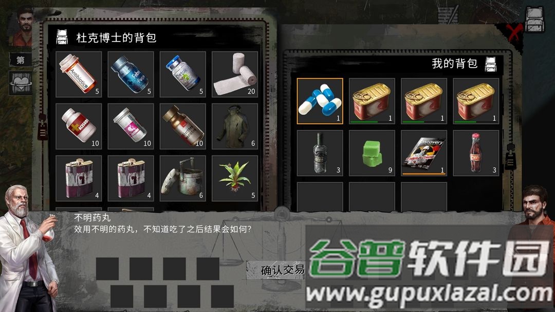 准备充足医疗物资与零食酒水作为交易资本。服用万人迷药丸后寻找博士交易。