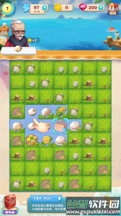 2、核心玩法为合成机制,将相同等级的素材合并为高阶物品;