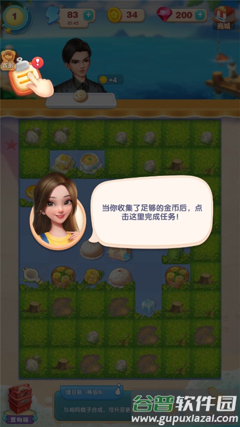 1、完成日常订单收获水滴棋子,单次点击收集或合成高阶形态增加收益;
