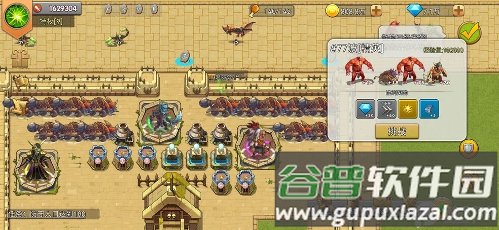 3、巧妙利用城墙引导怪物行进路线,飞行单位需用范围技能快速处理;