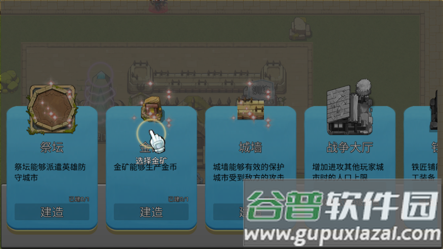 5、升级城市需要大量金币,可建造金矿来稳定获取资源,从建筑列表中选择金矿进行建造;