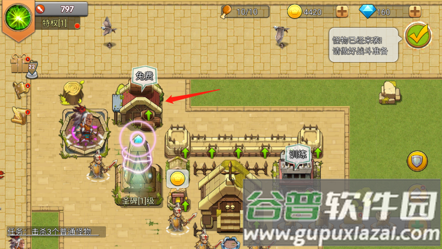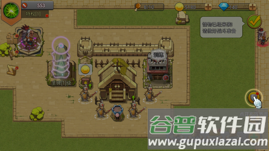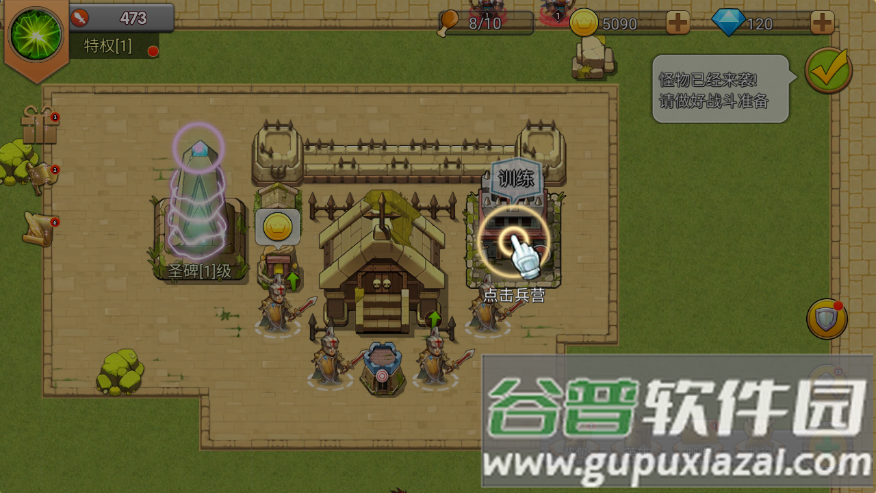 6、点击兵营并选择士兵类型即可训练部队,增强防守力量;