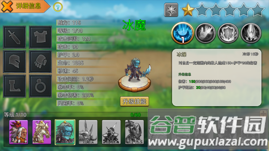 1、冰魔作为绿色英雄技能范围大、培养简单,是前期过渡的最佳选择,其范围伤害能快速清理大量敌人;