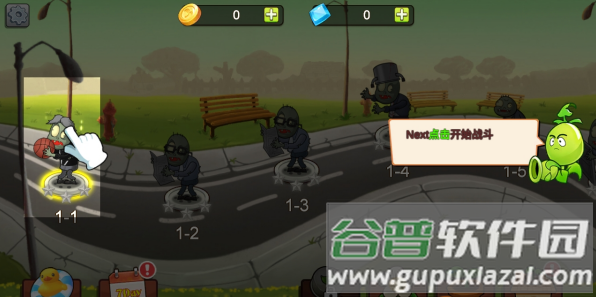 1、完成游戏安装后启动程序,选择1-1关卡开始初次挑战;