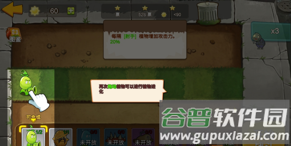 3、使用游戏金币对植物进行升级,提升其攻击与防御属性;