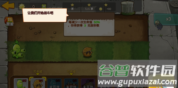 5、完成所有植物部署后点击开始战斗,与来袭的僵尸展开对抗;