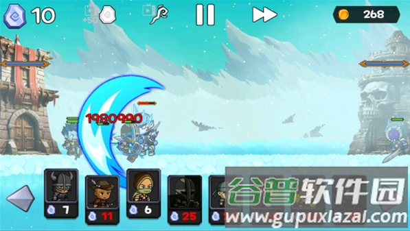 4、消耗能量放置卡牌与敌人作战,击败强大对手获得胜利,使用金币可以升级角色技能和各项能力;