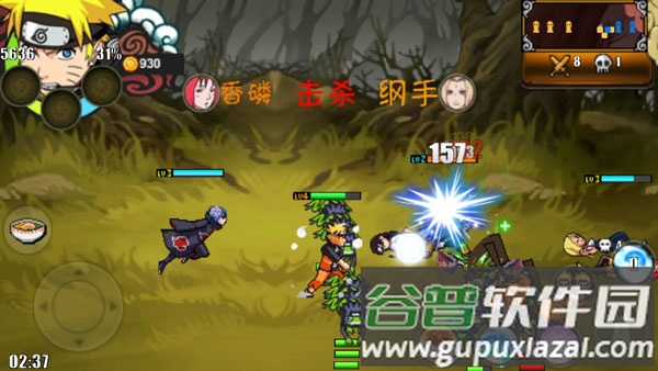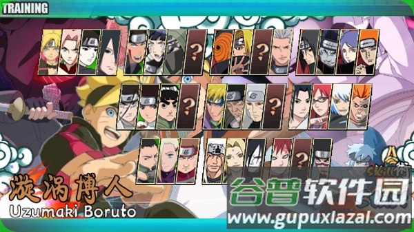 进入游戏后首先进行角色选择,众多忍者角色各具特色,每个角色都配置了专属技能与终极奥义。