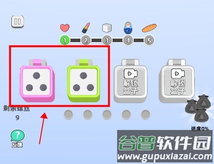 1、每一关开始前,注意屏幕上方的通关条件,收集指定颜色的螺丝才能过关;
