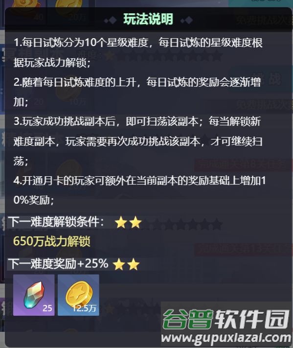 每日试炼副本是拉开实力差距的关键环节;该副本难度根据玩家实力动态调整,实力越强,挑战的星级越高,掉落奖励也越丰厚。