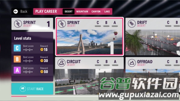 3、返回主界面点击PLAY career即可选择不同赛道开始挑战;