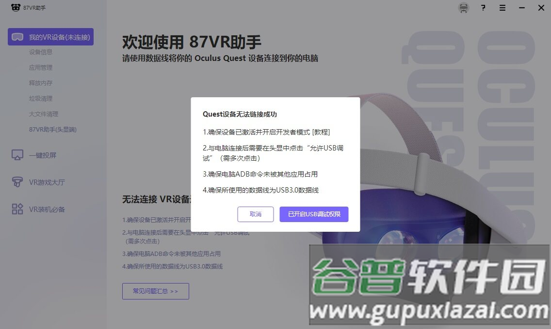 二、使用USB 3.0及以上数据线将Quest2连接至电脑;
