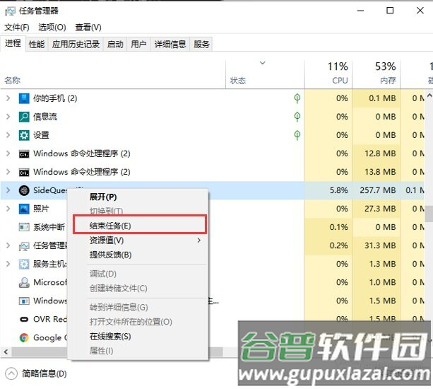 选中对应进程并结束任务,重新连接头显并允许USB调试。