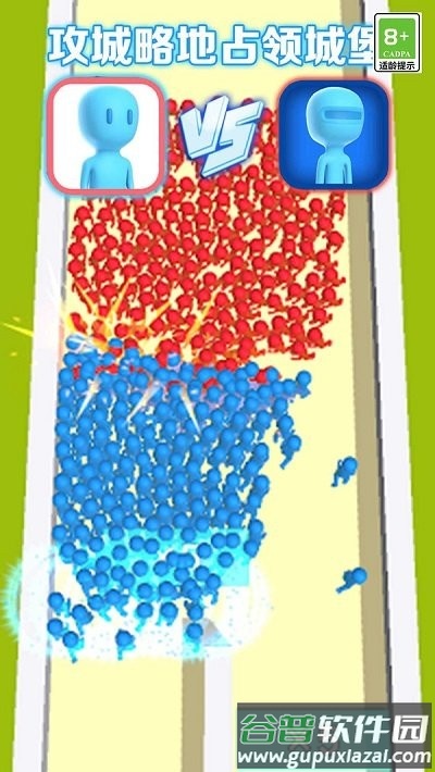 通过发射角色穿过倍增门来扩张你的队伍,占领所有据点;注意避开红色障碍门,击退试图阻挠你的红色人群;玩家需要不断集结沿途单位壮大自己的团队规模,增强整体作战实力;喜欢这类集结对抗玩法的朋友不妨下载体验。