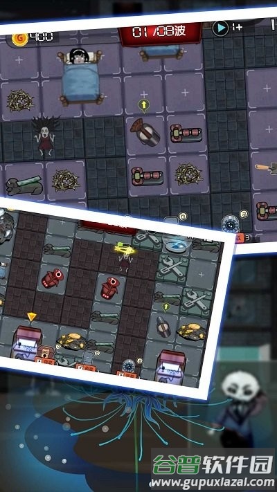2、将伤害型防御塔与辅助型防御塔搭配使用,有效消灭进攻的猛鬼;