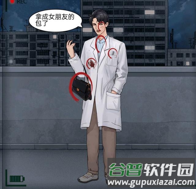 画面中出现穿白大褂的男子,需找出五处可疑痕迹:血迹、手术刀、抓痕、病号服和女士手提包。
