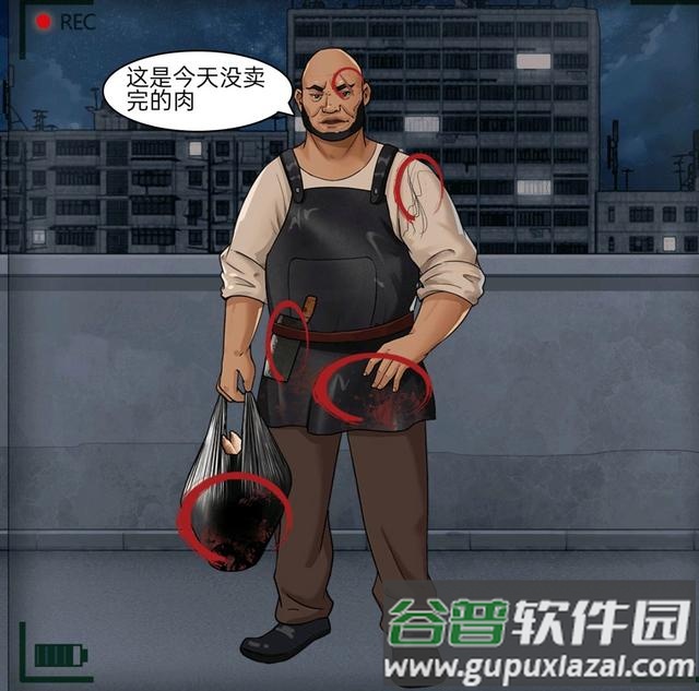 出现系围裙、拎包裹的光头男子,需识别五处疑点:伤口、女性发丝、菜刀、带血围裙和染血包裹。