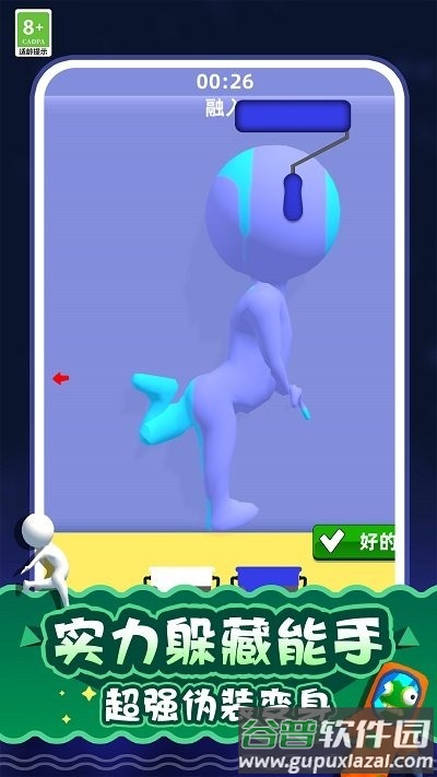 1、玩家可以自由选择藏身位置,灵活操控橡皮人角色;