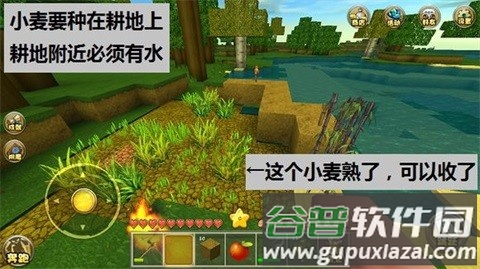 先制作木锄或石锄,找到靠近水源的草地,手持锄头点击草地即可开垦为耕地。注意:耕地缺少水源会干涸;地上有草时需要先清除才能开垦,清除草时可能获得小麦种子。