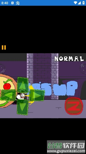 1、操作方式:通过点击屏幕控制角色移动跳跃,灵活躲避身后紧追的披萨怪物;