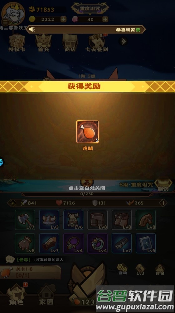 3、随后boss自爆会将你打回一级并施加诅咒,必须重新打怪获取装备;