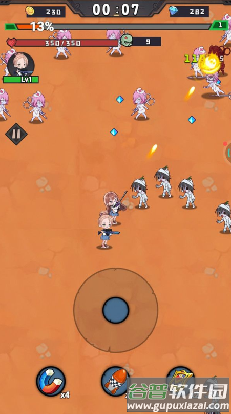 2、操纵美少女角色移动射击,清理场景内全部僵尸;