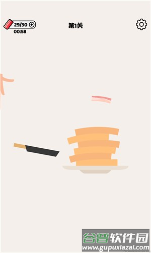 2、通过长按屏幕倾斜锅体,让培根慢慢滑到锅子后端准备抛掷;借助调整平底锅倾斜角度和发力程度,将培根弹射出去,最终让培根完整盖住关卡中展示的物品。