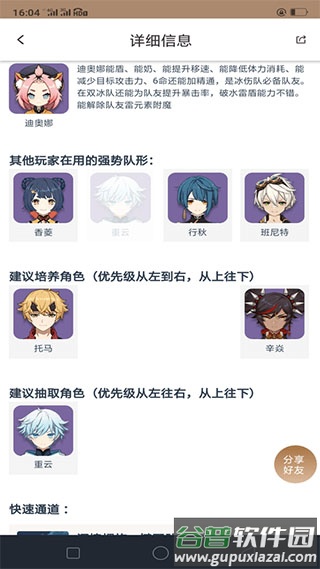 2.内置完整游戏数据库,涵盖钟离、雷电将军、神里绫华等高人气角色,也包括部分冷门角色,提供包括角色攻略、圣遗物与武器搭配、等级与天赋突破所需材料汇总等全方位数据查询;