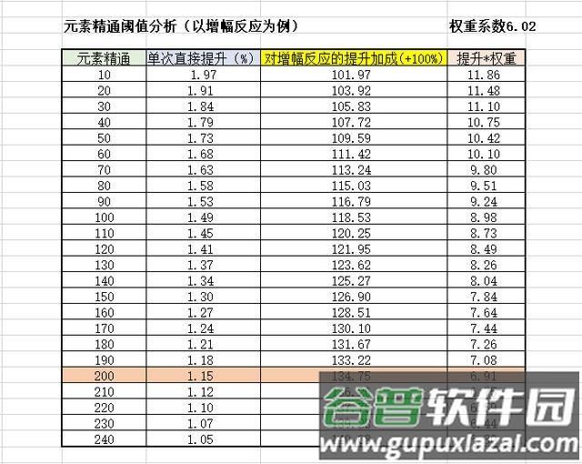 以下为各属性稀释阈值分析(以资源权重单次提升收益达7%作为阈值参考):