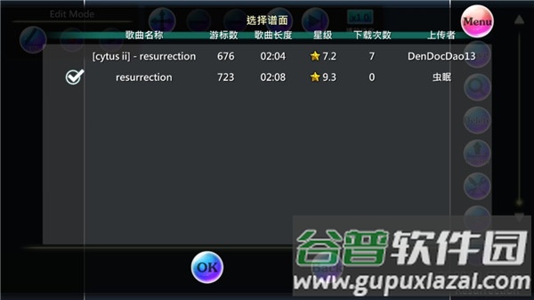 6、在搜索结果中选择想要的谱面,点击确认,系统提示读取完成即代表导入成功;