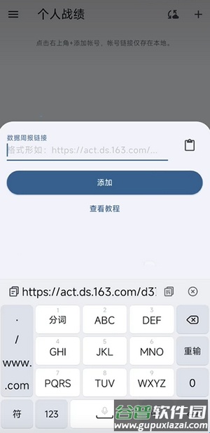 1、启动软件后进入主界面,找到个人战绩查询入口,输入对应链接;